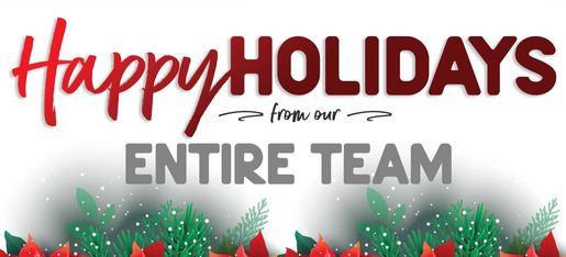 We will be closed Wednesday the 24th at 3:00pm and Wednesday the 31st at 3:00pm and all day Thursday the 25th and Thursday the first. Happy New Year!